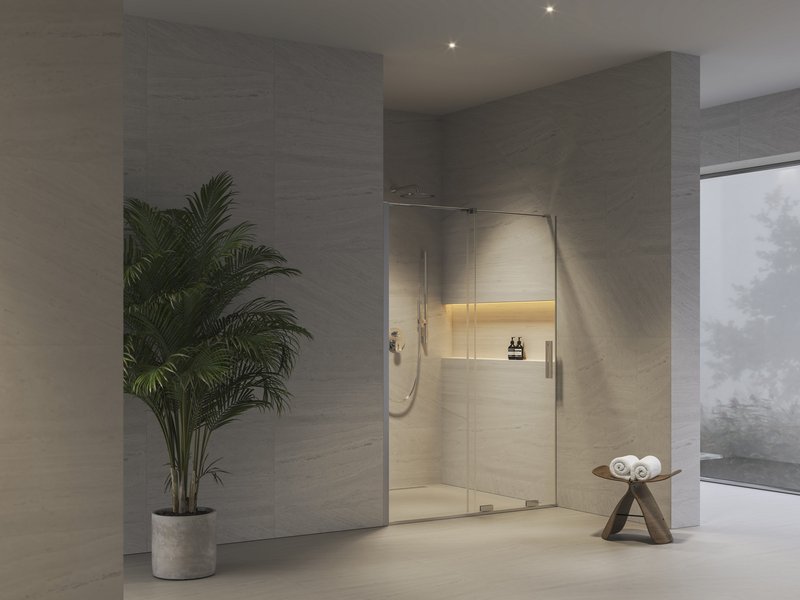 Das dezente, rahmenlose Design lässt den gesamten Raum optisch leichter wirken. Das praktische Schiebesystem ist platzsparend und gewährleistet eine komfortable Nutzung auch in kleineren Badezimmern. Der sanfte Lauf des robusten 8-mm-Glases und die präzise verarbeiteten Details sorgen für eine entspannte Benutzung über lange Zeit.