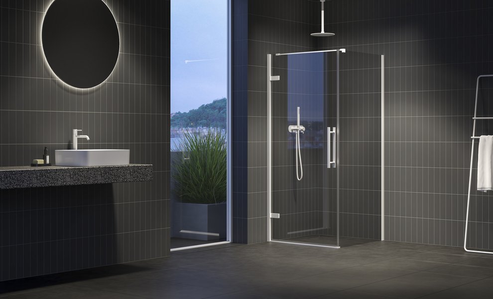 Die Duschtür COSD1 ist einteilig und bietet somit einen bequemen breiten Einstieg. Steigen Sie bequem ein und tauchen Sie unter den Schwall warmen Wassers.