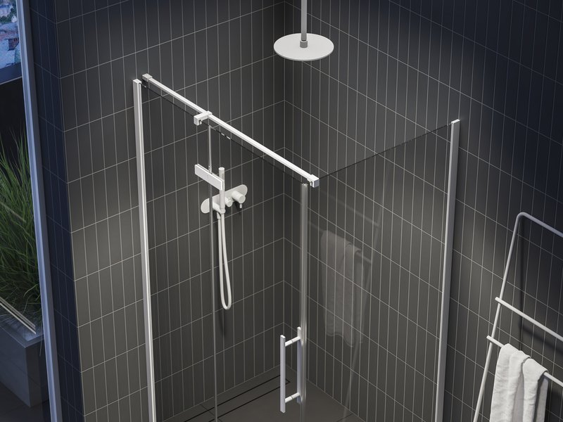 Das komplette Produkt wird mit zwei separaten Artikeln bestellt! Die Bestellung des kompletten Produkts erfolgt über zwei separate Produktpositionen! Die linke Duschtür kann nur mit einer linken feststehenden Wand kombiniert werden, die rechte Duschtür nur mit einer rechten feststehenden Wand.