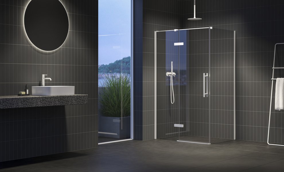 Durch diese Kombination erhalten Sie einen Duschraum mit quadratischem oder rechteckigem Grundriss und einer Größe, die Ihren Bedürfnissen entspricht. Die Duschtüren sind in Breiten von 100 cm bis 120 cm erhältlich.