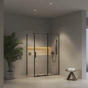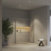 Verbinden Sie die Duschtür mit einer festen Wand, und Sie erhalten einen Duschbereich mit einer Größe ab 80 x 100 cm bis 90 x 140 cm