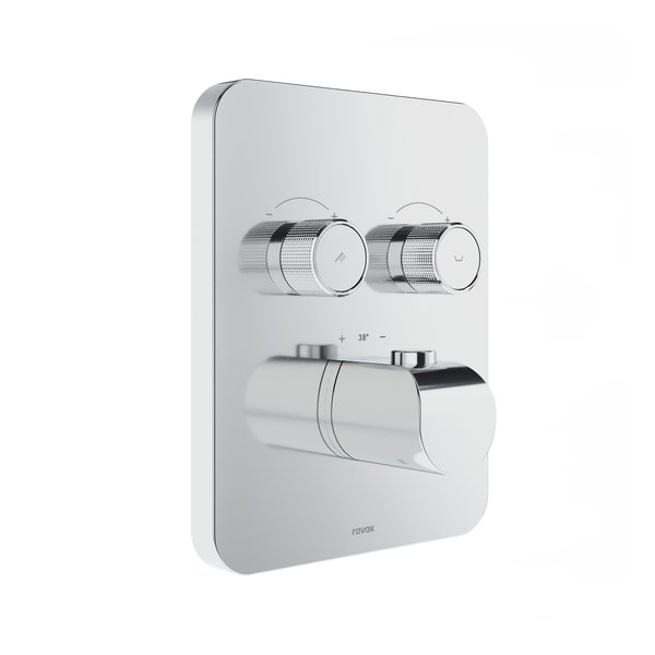 Die Thermostat-Unterputzarmatur ist für die Verwendung des R-Box Unterputzkörpers vorbereitet, der die Arbeit erheblich erleichtert und für ein besseres Ergebnis sorgt. Für die äußerliche Reinigung empfehlen wir die Verwendung des Reinigungsmittels RAVAK Cleaner Chrome.