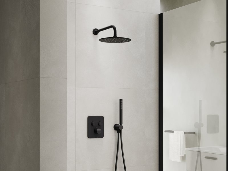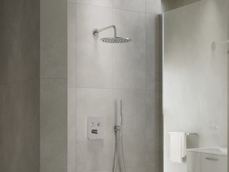 Die Flat Unterputzarmatur mit Schalter eignet sich für Duschecken mit Fest- und Handbrause oder für Wannen mit Überlauffüllung mit Duschmöglichkeit.