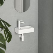 - Zubehör zum Kauf verfügbar: Fester Waschbecken-Ablaufsystem, Waschbeckenablaufsystem Flat Siphons, Duscharmatur, Spiegel, Badaccessoires