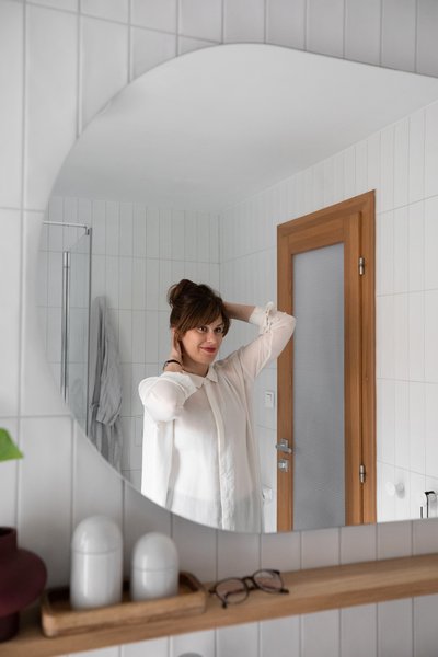 Als Alice Bendová in ihr Haus umgezogen ist, konnte sie zwei Badezimmer für sie und ihre zwei kleinen Kinder einrichten. Für das kleinere Badezimmer empfohlen wir ihr die große rahmenlose Duschecke GlassLine 120 x 80 cm mit ultraflacher Wanne. In die Duschen passen jetzt alle hinein und sie verliebten sich gleich in dieses Ritual. Die Duschecke GlassLine ist in unserem Sortiment nicht mehr enthalten, die Ecke Brilliant konnte sie aber von allen Seiten ersetzen. Für Entspannungsmomente in größerem Raum lieferten wir Alice die Eckbadewanne Gentiana, bei welcher die Kinder den Sitz oberhalb des Wasserspiegels und die breiten Ränder zum Ablegen des Spielzeugs sehr gut geschätzt haben. Alice hat viele Kosmetikartikel, die sie in Schränken aus dem Classic-Konzept komfortabel aufbewahren kann.