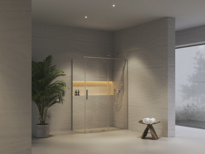 Das dezente, rahmenlose Design lässt den gesamten Raum optisch leichter wirken. Das praktische Schiebesystem ist platzsparend und gewährleistet eine komfortable Nutzung auch in kleineren Badezimmern. Der sanfte Lauf des robusten 8-mm-Glases und die präzise verarbeiteten Details sorgen für eine entspannte Benutzung über lange Zeit.