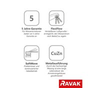 Für eine einheitliche Lösung und ein harmonisches Badezimmerdesign empfehlen wir die Kombination mit weiteren Flat Armaturen. Für die oberflächliche Reinigung empfehlen wir die Verwendung des Reinigungsmittels RAVAK Cleaner Chrome.