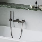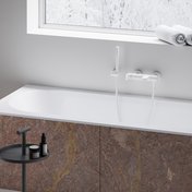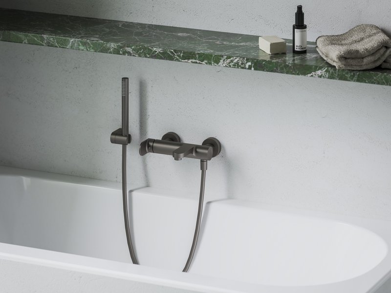 Die Armatur zur Wandmontage für Badewannen eignet sich für jede an einer Wand installierten Badewanne. Eleganz ist die Schönheit, die sich aus der Ausgewogenheit ergibt. Sie zeigt sich in jedem Detail der Armatur. Die Fließfähigkeit von Wasser trifft auf die Stabilität von Metall. Die sanfte Rundung des Bügels trifft auf die Festigkeit des Körpers und den markanten, massiven Hebel. Der seitliche Druckumsteller sorgt für bequemes Umschalten des Wasserflusses zwischen dem Füllen der Wanne und dem Duschen.