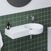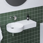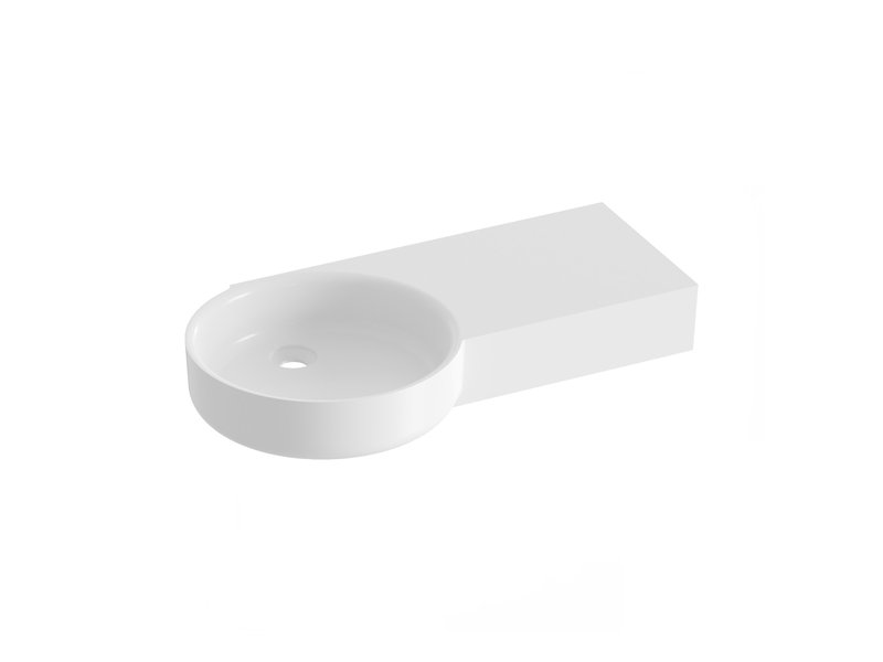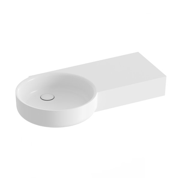 ARC-Waschbecken 83/43 L/R mit Ablagefläche auf der linken oder rechten Seite. Das Waschbecken verfügt über keinen Überlauf – aus diesem Grund ist eine feste Ablaufgarnitur einzubauen, um ein Überlaufen zu verhindern. Das Waschbecken ist für eine Kombination mit einer Unterputzarmatur vorgesehen.