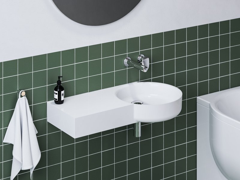 Die ARC-Waschbecken ziehen die Aufmerksamkeit im besten Sinne auf sich. Sie vereinen alles, was man von einem Waschbecken erwartet. Einen angenehmen Waschbereich, eine großzügige Ablagefläche und die Möglichkeit der Wandmontage, wo immer sie benötigt wird. Warum also nicht direkt über der ARC-Badewanne, wenn Ihr Badezimmer nicht gerade zu den größten zählt. Design by Vrtiška & Žák Studio.
