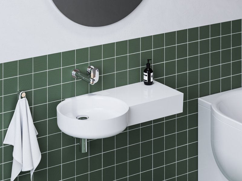 Der schlanke Rand des ARC-Waschbeckens geht nahtlos in eine großzügige Ablagefläche über, die viel Platz für alles bietet, was Sie benötigen. Seife, Zahnbürsten, Handtuch, Kosmetik oder auch eine Kerze – etwa für ein entspannendes Bad.