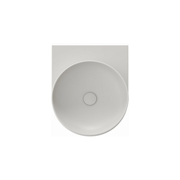 Das Keramik-Waschbecken Yard 400 zeichnet sich durch seine runde Form und die eingelassene Ablagefläche aus.