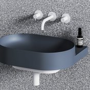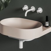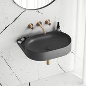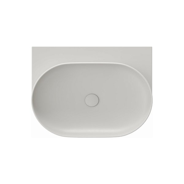 Das Keramik-Waschbecken Yard 600 zeichnet sich durch seine ovale Form und die eingelassene Ablagefläche aus.