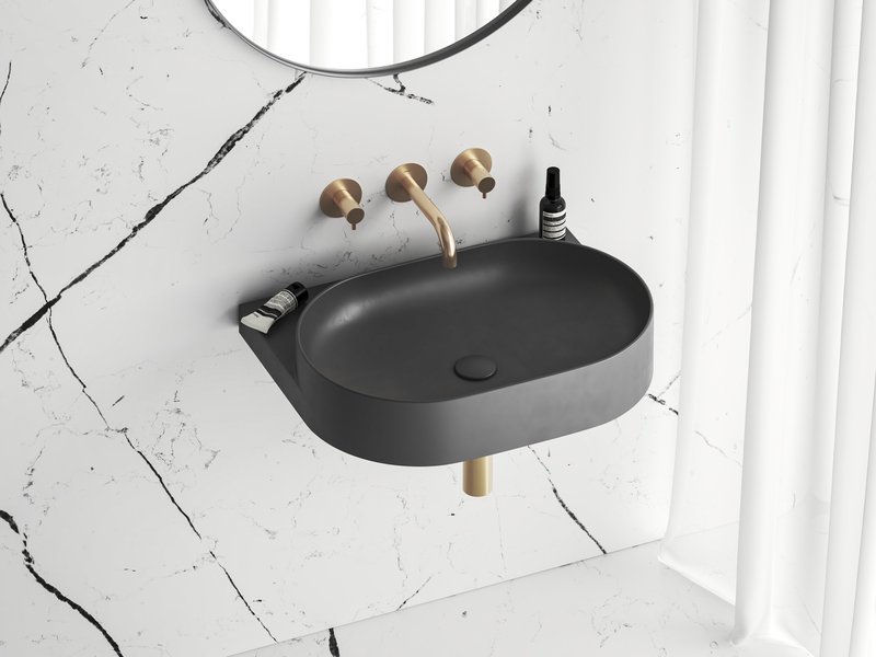 Die Version ohne Hahnloch ist für die Kombination mit einer Unterputzarmatur geeignet. Diese Kombination ist die ultimative minimalistische Lösung, und Sie gewinnen zusätzliche Zentimeter an Stauraum – dort, wo sonst eine Einlocharmatur stehen würde.